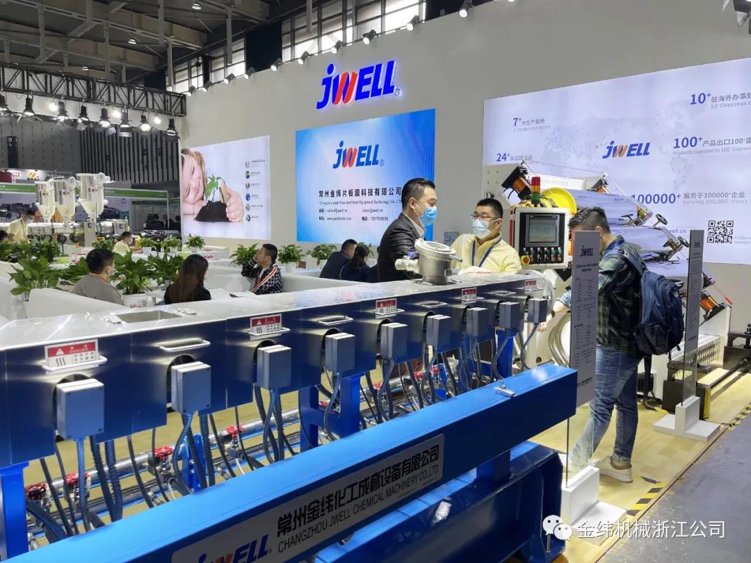 这次我司现场展出可降解专用改性设备超高扭矩平双主机、PLA可降解三辊压光机、四机共挤机组及中空成型机等系列的多款产品,每一款产品都拥有特定的应用领域,并且各自有着优异的各项性能和稳定的品质。金纬机械以强大的服务团队现场讲解、分享可降解塑料的各种应用,引领塑料机械行业新材料、新技术、新装备。