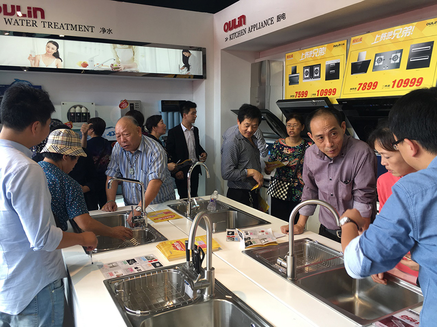 其中OULIN歐琳近期上市的淨水水槽在現場備受關注,在工作人員的操作演示與講解下,顧客表示價格在8000元左右的淨水水槽不僅整合了廚房空間,還能讓家中老少飲上放心水,的确物有所值。僅兩天,淨水水槽便銷售了10餘單。