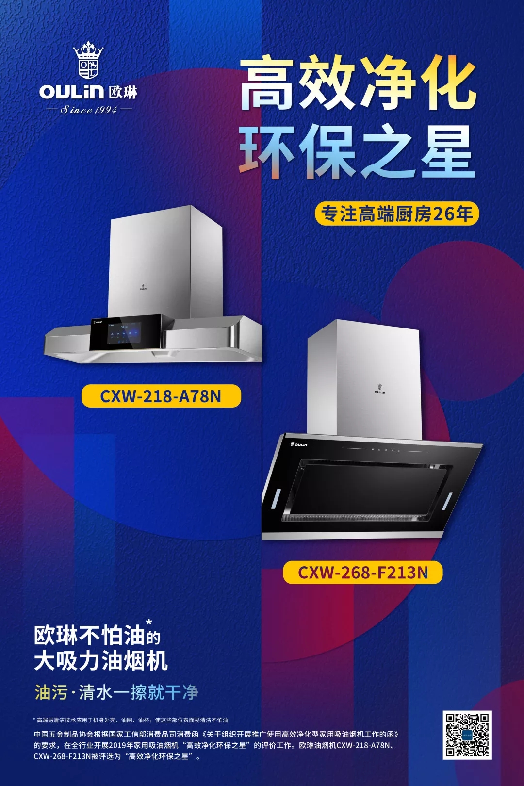 據了解,“高效淨化環保之星”的評選活動根據科學公正的評價、淨化性能好中選優、市場監督認可的原則,從同類産品中選擇出淨化水平領先、核心技術競争力強、節能效果好、環境友好型、社會認可度高的産品,極具參考價值。此次歐琳兩大産品被授予“高效淨化環保之星”稱号,無不印證着歐琳不怕油的大吸力油煙機已然成為具有核心競争力、節能效果好、社會認可度高的優秀産品。