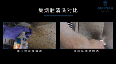 集煙腔清洗對比(右:歐琳不怕油的大吸力油煙機)