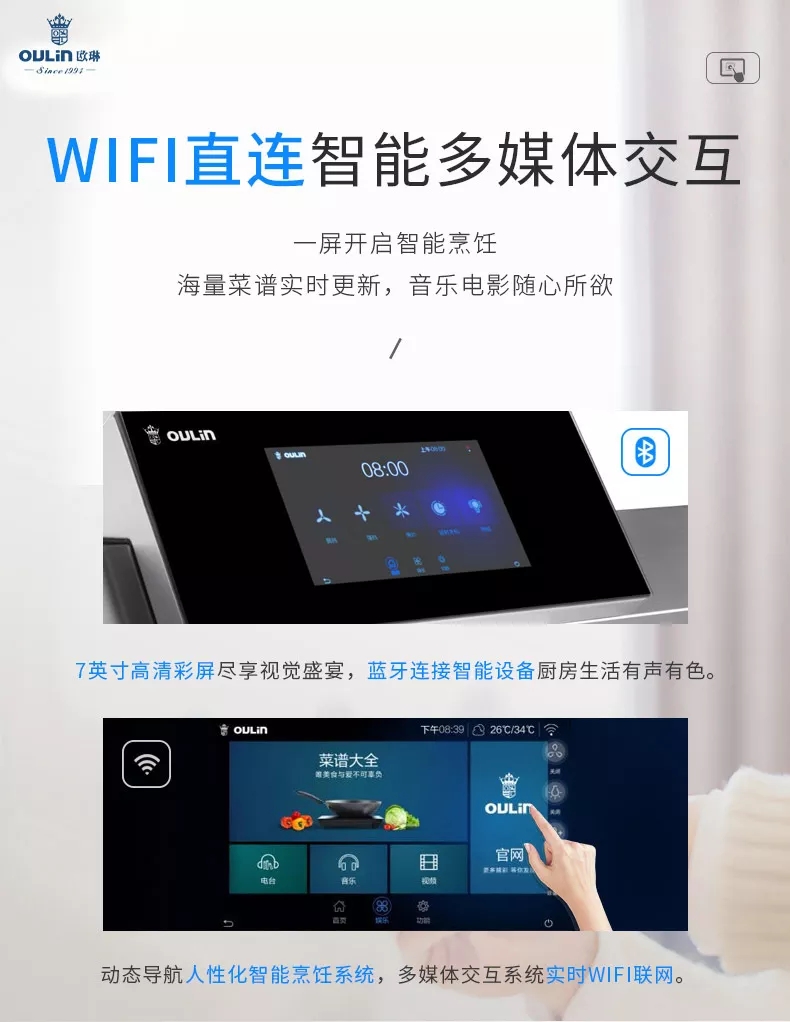 下廚是一個輕松的過程,追劇、聽音樂更要兩不耽誤。歐琳A78N攜帶智能彩屏功能,你想追的《慶餘年》、你想聽的《說好不哭》都有!