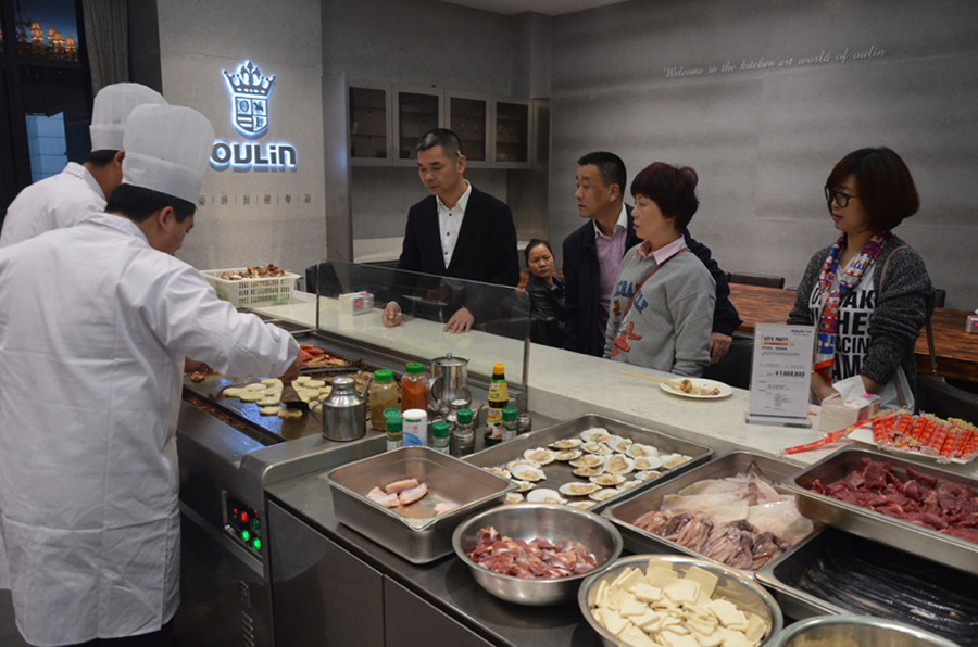 另外,在用戶們耐心選購的時候,OULIN歐琳廚房展廳中的Party廚房已經準備就緒,特邀的大廚們精心烹制着美味,等待用戶們來享用一場鐵闆燒盛宴。誘人的香氣不斷從窗戶中飄出,讓人饞涎欲滴。