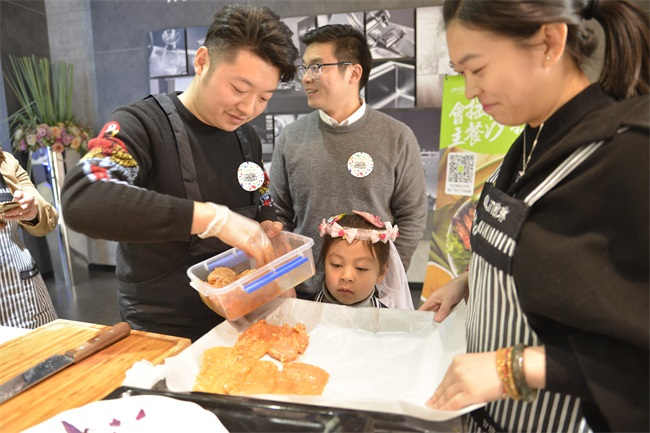 如何腌制雞胸肉色澤更美?如何讓沙拉帶上烤面包的酥脆?煮熟胡蘿蔔、玉米粒時加上橙子會讓沙拉帶着甜香?這些小訣竅,大廚都在活動過程中一一傳授給大家。從OULIN歐琳烤箱出爐的面包脆、雞胸肉、烤蝦等食材還沒放進沙拉裡,差點被寶貝們搶食完畢啦。