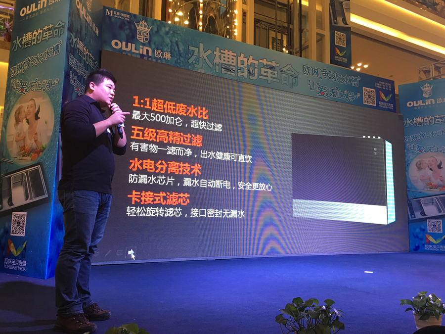 随後,OULIN歐琳的産品專家為現場家庭詳細揭秘了淨水水槽,這款集水槽與淨水功能的新神器,一個龍頭可出熱水、冷水、淨水、純水四種水,擁有台上觸屏操作、濾芯更換提醒等智能設定,讓廚房淨水不再占空間,更便捷。