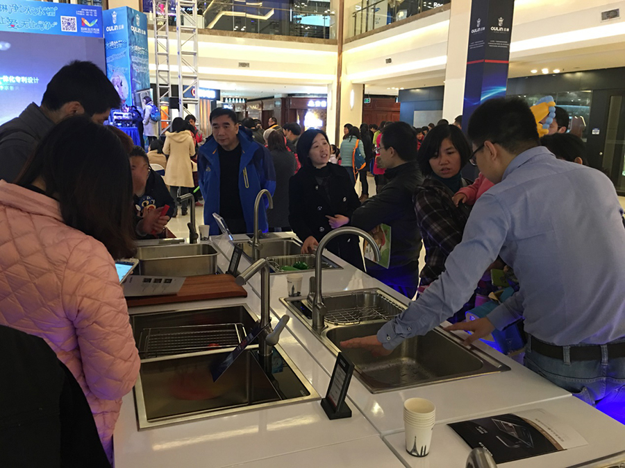 OULIN歐琳淨水水槽研發人員還現場為大家演示了淨水水槽的運行過程,親眼 見證河水、自來水甚至是墨汁轉變成了清澈的飲水,在場的家庭表示非常新奇,而且漲了知識。