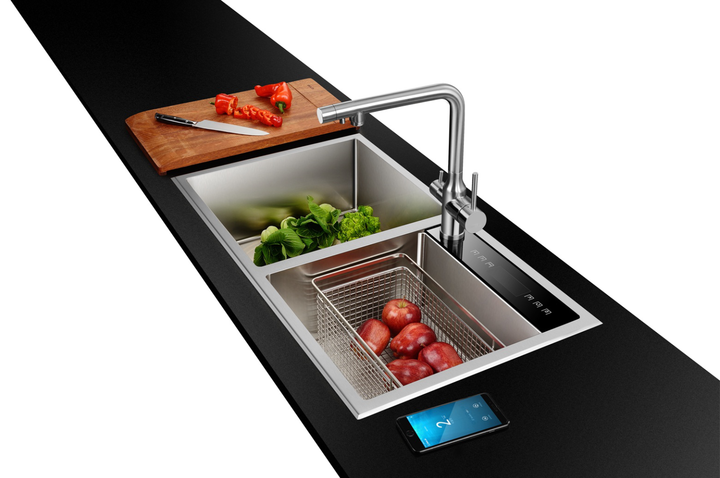 比如歐琳發布的新款淨水水槽,相比初代産品的面世已經過去一年半的時間。2015年9月,歐琳發布首款淨水水槽産品,将水槽與淨水器結合,采用反滲透技術,定位高端家庭市場。如今的淨水水槽一方面升級了濾芯,另一方面在智能模塊上完全實現了智能化、可視化操作,将水槽帶入智能時代。