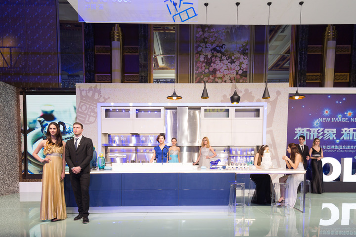 在這次推出的新品中,還有一款以灰藍色為主調的歐琳中國藍Party社交廚房。2015年3月,歐琳推出Party廚房,将社交理念融入廚房場景中,除了具備廚房自身的功能特點外,還集合了年輕人娛樂、情感的訴求,倡導廣大“低頭族”回歸家庭,承載更多的情感交流的使命。