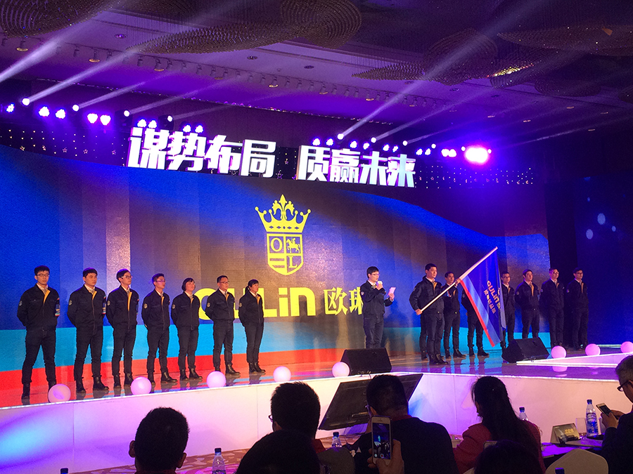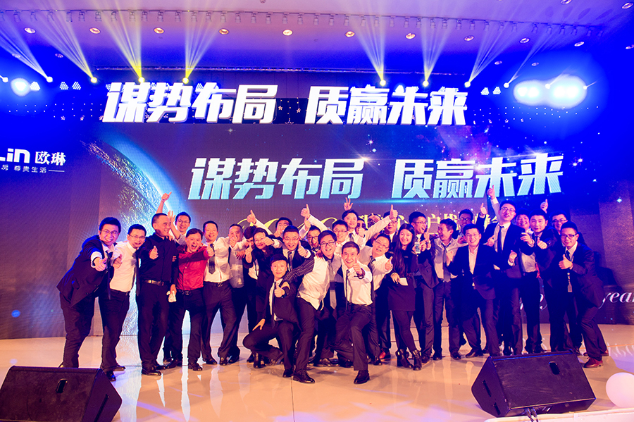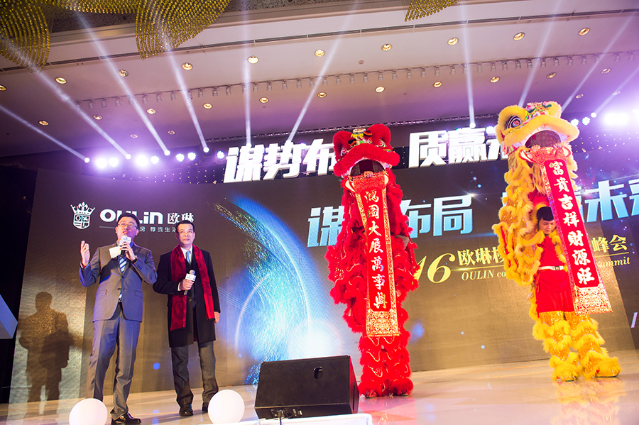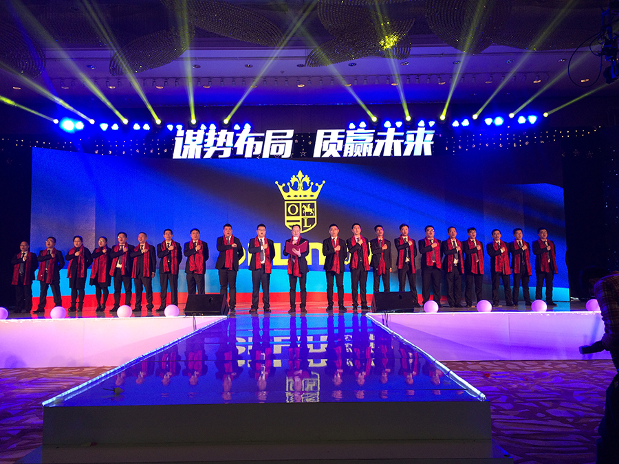 在會議最後的晚宴,不僅有賞心悅目的助興節目,OULIN歐琳團隊還對在場的代理商朋友們鄭重宣誓,在未來的合作中,秉承互利共赢理念,做好代理商朋友們的後盾支持,攜手共鑄OULIN歐琳2016年的逆勢輝煌!
