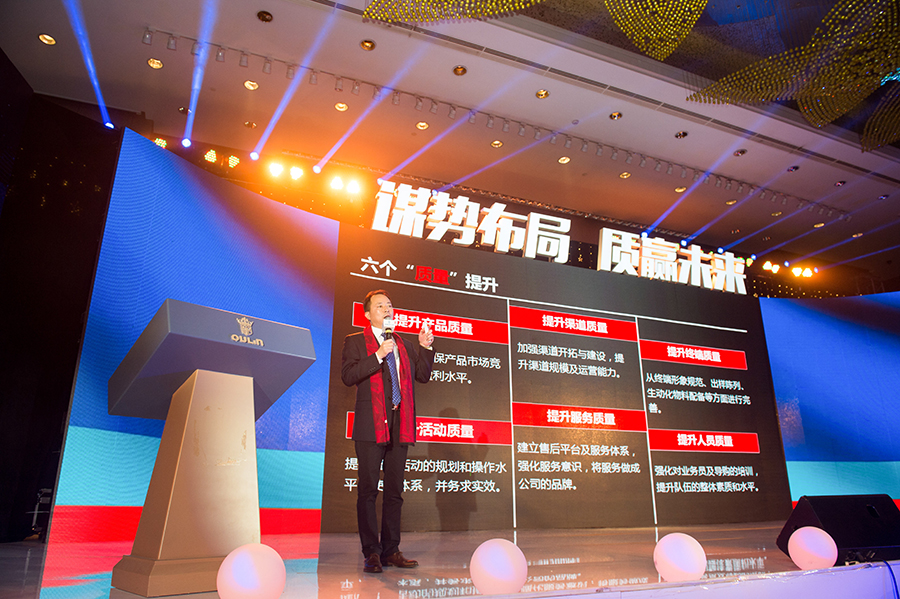 多年來,OULIN歐琳一直依靠産品創新“打天下”,依靠品質“守天下”,在會議現場OULIN歐琳“品質小組”發表了品質宣言。随後,OULIN歐琳董事長徐劍光在緻辭暨戰略發布中表示,“在行業中,OULIN歐琳一直有着高度的品質感與美譽度,未來OULIN歐琳将在響應國家戰略方向的基礎上,進一步調整組織架構,以市場為導向,深入探究用戶需求源頭,忠于終端,優化流程,快速反應,在細分市場的同時,捍衛OULIN歐琳在國内外的市場地位,與代理商們一道共同創造OULIN歐琳燦爛的明天。”