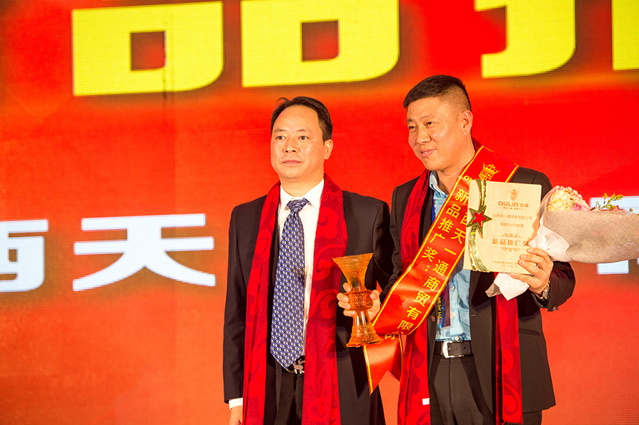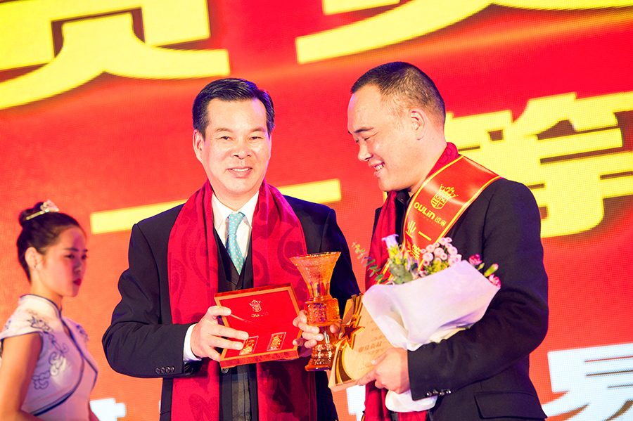 毋庸置疑,作為企業與消費者的重要連接紐帶,代理商作為企業末梢銷售環節,起到塑造企業終端形象、保障現金流順暢、協助企業拓網等重要作用,OULIN歐琳也深谙此道。在會議中特别安排了頒獎環節,對過去一年中有突出貢獻的代理商,頒發了包括“業績貢獻獎”、“渠道開拓獎”、“新品推廣獎”、“優秀終端獎”等一系列獎項,并送上黃金紀念品。
