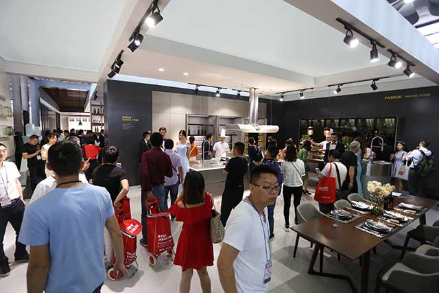 本次展會OULIN歐琳展館延續了往年德式風格,以“Party食光”主題,在此基礎上做了全新升級!新升級的Party廚房社交體驗中心,在本次展會中推出了五款新品,無論是時尚的工業風,亦或極簡風格的,還是經典實木和原鋼完美融合的社交廚房設計風格,都精彩演繹了美好快樂的社交生活。誘人的美廚美食,吸引了所有在場的觀衆們,歐琳整體廚房在本次展會中獨樹一幟,别具一格!