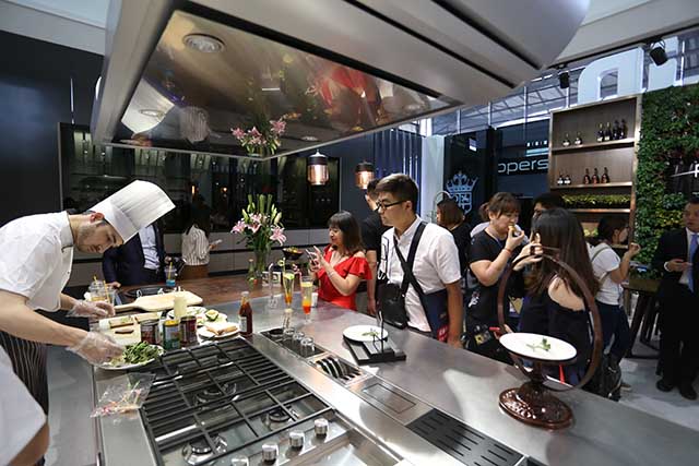 在“Party食光”的展館裡,不但有薩克斯現場的悠揚演奏,更有國外大廚現場烹饪助力,與消費者互動并教授烹調技巧;同時歐琳中國藍廚房裡有專業的糕點大師現做蛋糕和餅幹等美味甜點;展區内的香濃咖啡可以免費暢飲,讓現場客戶一邊暢享美食一邊徜徉精品之林,OULIN歐琳Party廚房的盛宴,盡顯優雅高貴!