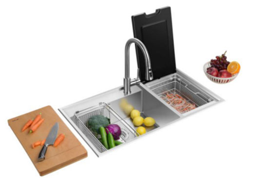 值得一提的是,此次新品配備了手機操控系統APP,用戶隻要将早上買好的菜經過簡單清理後,放入水槽,設定好模式,下班時就可以提前開啟水槽清洗功能,節約了操控時間。