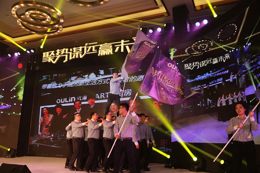 OULIN歐琳發展至今20餘年,離不開所有歐琳人的開拓、進取,會上一群年輕歐琳人的出現将氛圍再次帶至高潮,他們以蓬勃激昂的狀态展現了歐琳人的品質與堅持,從一線工人到前端銷售再到售後服務,無一不是以軍人的紀律、昂揚的鬥志奮鬥在工作線上,感染了在座所有與會者。