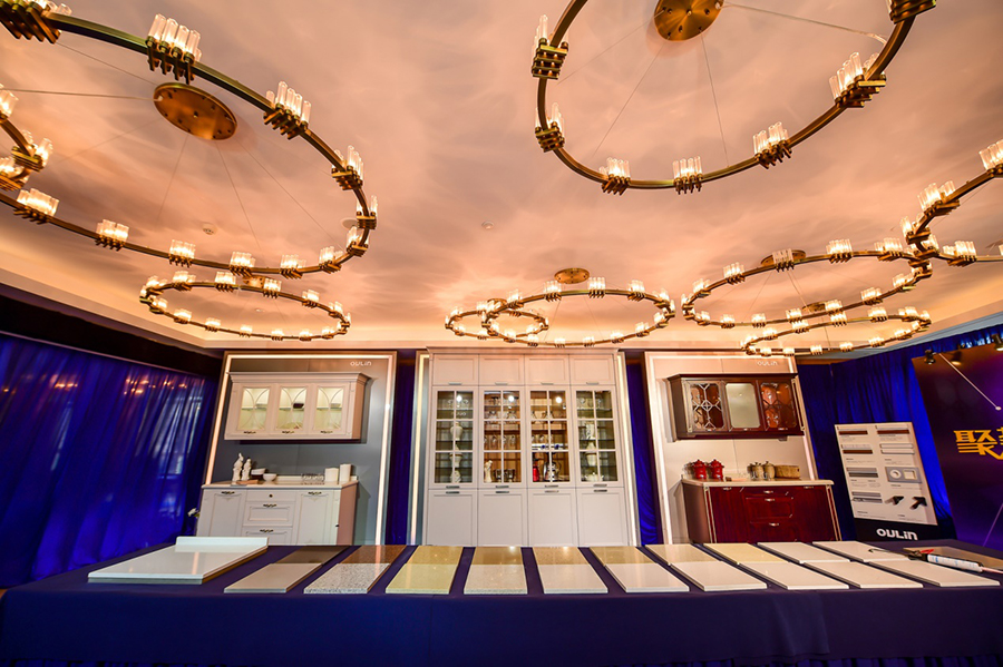 産品作為企業的基石,一直是OULIN歐琳最為重視的一環。此次會議上,發布的全新2016年整體廚房産品讓所有人為之眼前一亮,現場以時尚模特情景交互的方式展現了6款各具特點的門闆新設計。其中三款整體廚房新品更是在茶歇期間成了衆人圍觀的對象,OULIN歐琳的研發設計實力再次得到了大家的肯定。