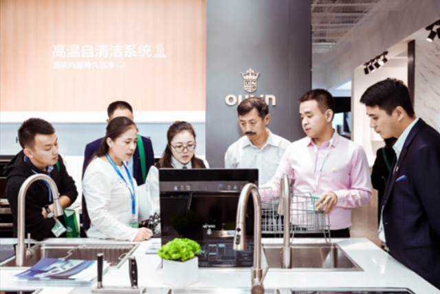 本次展會,歐琳展館逾400平方,延續歐琳一貫簡潔時尚的設計風格,全館按産品品類分為整體廚房展區、定制家居展區、品質衛浴展區、智能廚電展區幾大展區,分别展出了歐琳年度主打新品。現場還設有美食體驗區,大家在觀展的同時還可以在愉悅的氛圍感受歐琳帶來的品質生活。